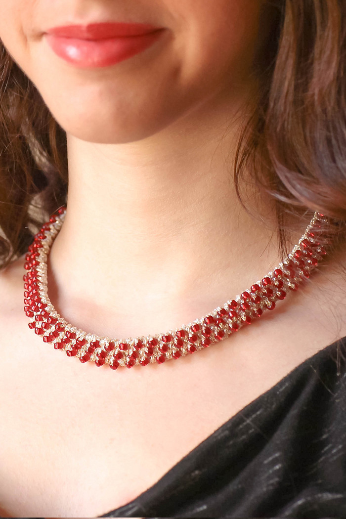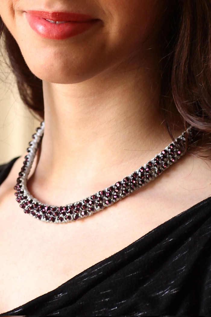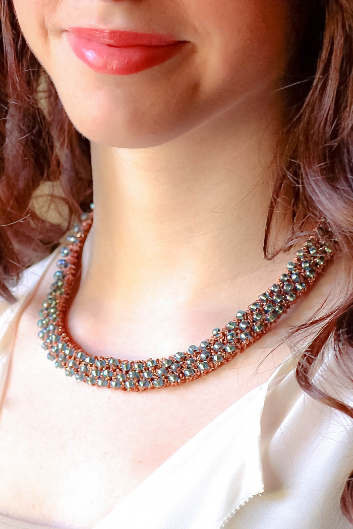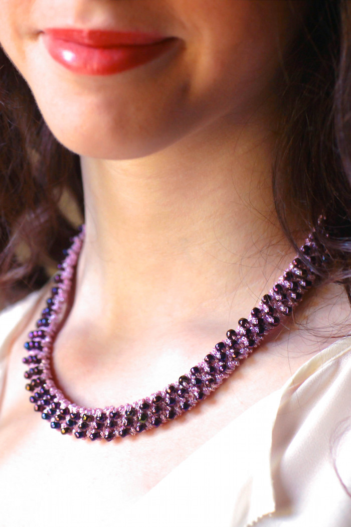 Classic yet modern, the Tiffany Necklace is a simple garter stitch necklace that combines shimmering S. Charles Collezione Stella yarn adorned with glistening glass beads to create its stunning look. It knits up gorgeously in a matter of hours. The Tiffany Necklace is so versatile that it can be comfortably worn with dressy attire or just a simple pair of jeans and a tee. Makes a wonderful unique gift!