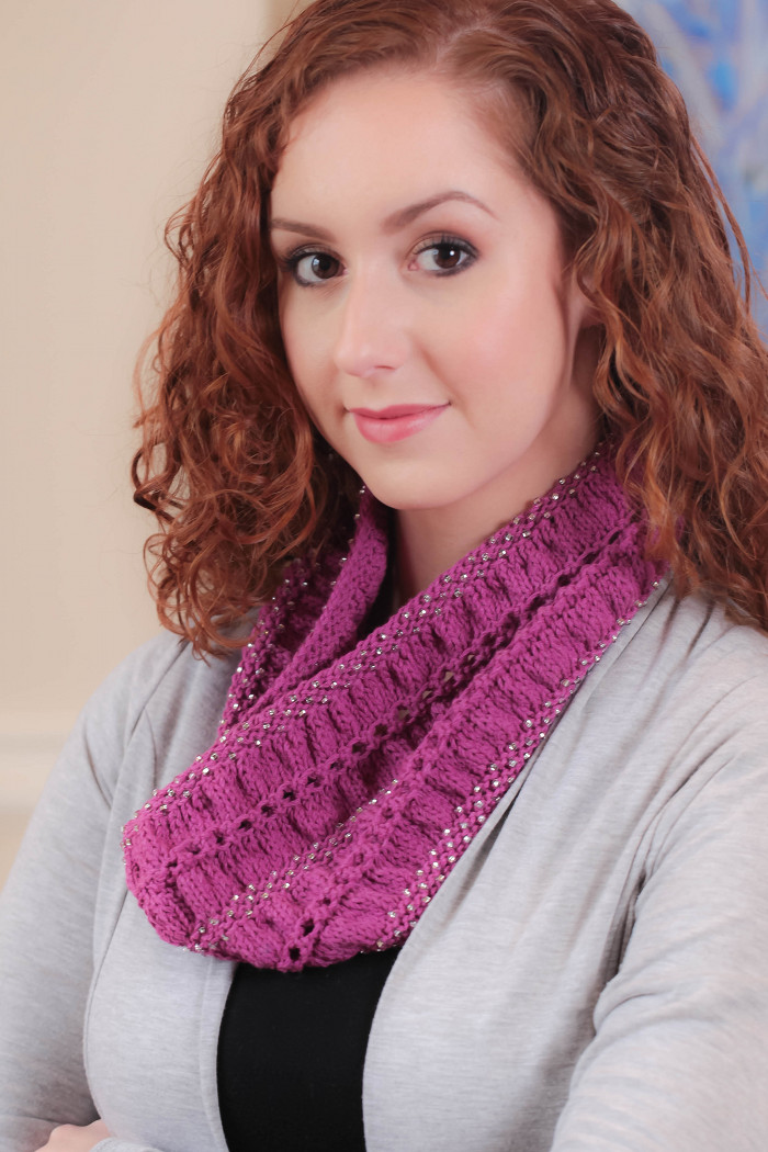The Compass Cowl is a captivating design. Knit with Weekend DK yarn for its incredibly soft touch. Its perfect combination of texture and rows of sparkling glass beads look fantastic and are suprisingly easy to knit.