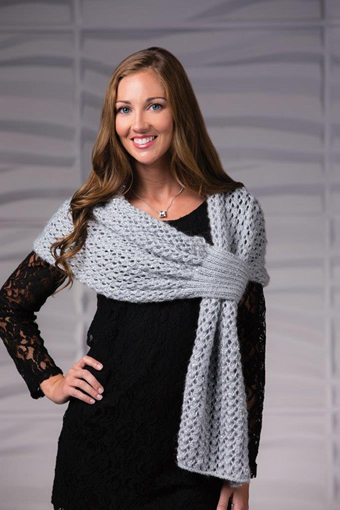 The Twilight Stole will be your go-to accessory to add understated elegance to any outfit. The ribbed end of the stole is sewn over to create a loop that the opposite end passes through, to fasten the stole together without the need of a pin. The whole effect is elegant and chic!