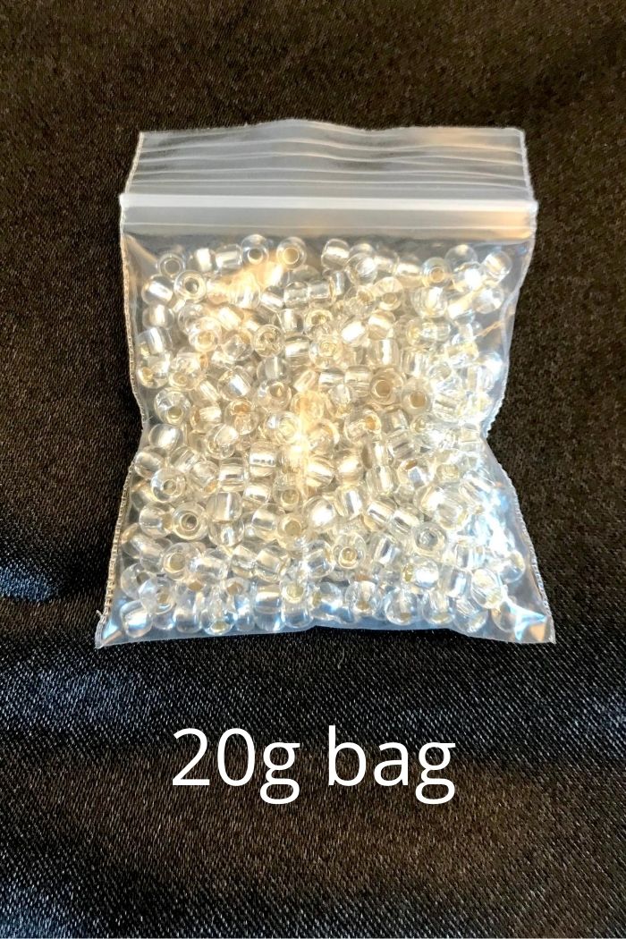 Silver LinedSize: 6/o (4mm)Packaged Units: 20 grams (.705oz)